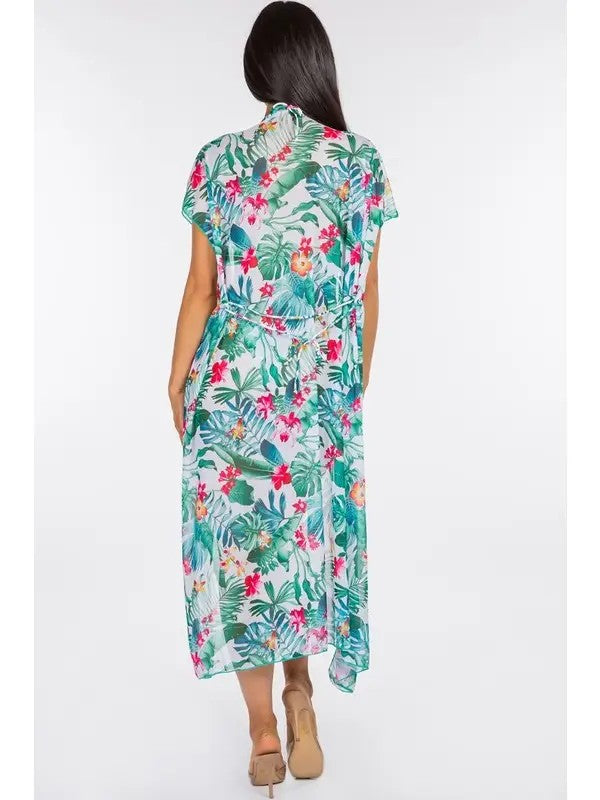 Stunning 3pcs Tropical Green Bikini and Wrap Skirt Set