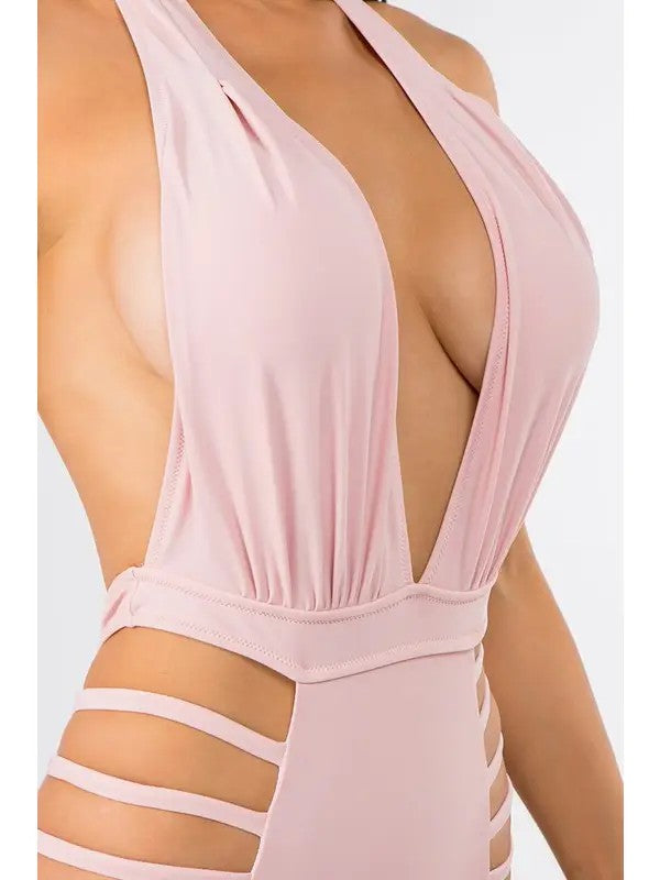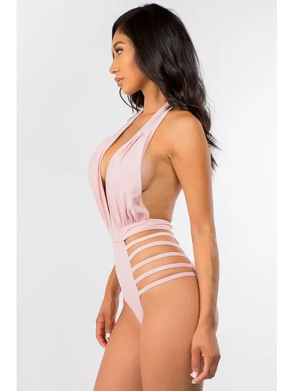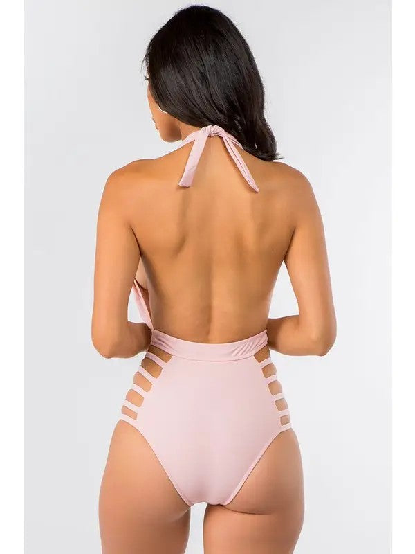 Empire V-Neck Mauve Halter Side String Swimsuit