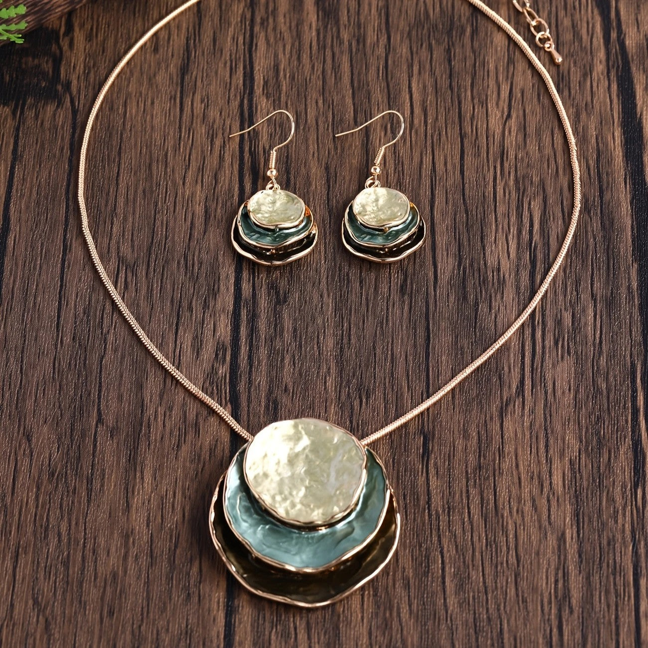 Vintage Boho Jewelry Setl Multilayer Round Pendant Necklace and Earrings